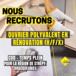 En travaillant et développant un partenariat avec l’Atelier Cambier, nous mettrons en place des environnements de travail adaptés dans lesquels chaque travailleur puisse s’épanouir. L’objectif ? Permettre la transmission de valeurs, le partage des compétences et ainsi la garantie d’un emploi valorisant et stable pour chaque collaborateur.